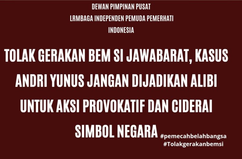 JAKARTA, 14/04/26|  Gerakan yang dilakukan oleh kelompok yang mengatasnamakan BEM SI Jawa Barat menuai kecaman dari elemen pemuda Dewan Pimpinan Pusat Lembaga Independen Pemuda Pemerhati Indonesia Tindakan mencoret foto Menteri Pertahanan dan Panglima TNI, KSAU dan KSAL dinilai tidak pantas, tidak beretika, serta mencederai nilai-nilai demokrasi yang beradab.